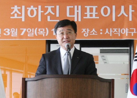최하진 롯데 자이언츠 대표이사가 한국시리즈 우승을 향해 목소리를 높였다. 최 대표이사는 7일 오전 사직구장 4층 대강당에서 열린 취임식을 통해 "과거 영광과 굴곡의 세월이 있었다. 이제 팬들에게 받은 사랑을 보답해야 한다"며 "조기에 한국시리즈 진출 및 우승을 일궈내야 한다"고 강조했다.