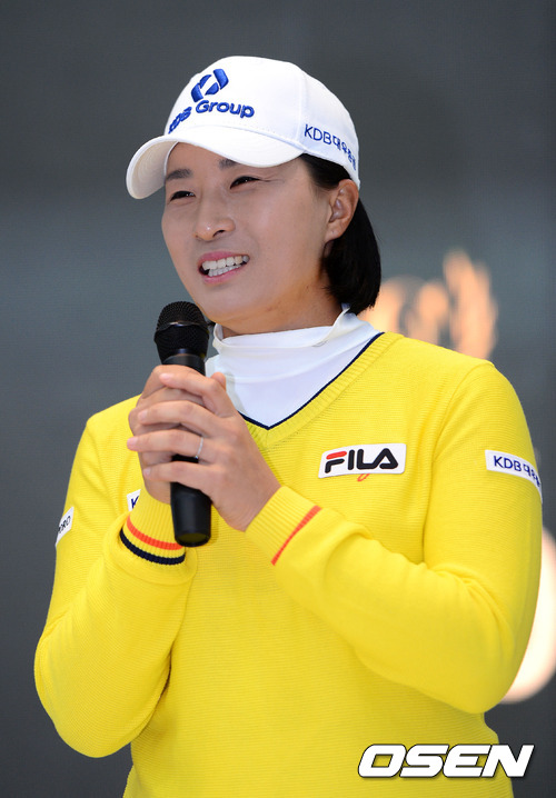 7일 오전 경기도 일산 킨텍스 제2전시장에서 진행된 '박세리-카이도골프 후원계약 조인식'에서 박세리가 인사말을 전하고 있다.