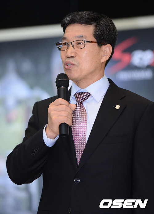 7일 오전 경기도 일산 킨텍스 제2전시장에서 진행된 '박세리-카이도골프 후원계약 조인식'에서 카이도 골프 채경용 회장이 인사말을 전하고 있다.