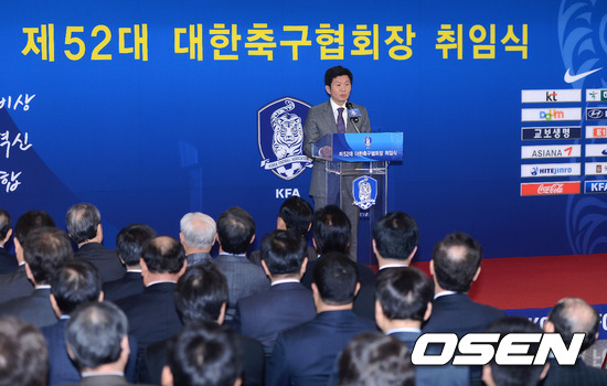취임 후 '봉사와 소통'의 정신으로 바쁜 행보를 이어온 정몽규 회장은 이 자리에서 한국축구의 발전을 위해 헌신할 것을 다시 한 번 다짐하고, 온 축구가족이 힘을 함께 모아줄 것을 부탁했다. 또 전임 조중연 회장의 임기동안의 노고를 기리며 감사패를 전달하는 시간도 마련됐다. / youngrae@osen.co.kr