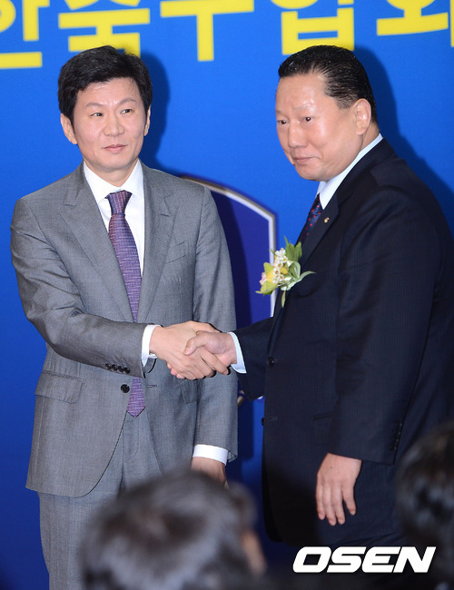 취임 후 '봉사와 소통'의 정신으로 바쁜 행보를 이어온 정몽규 회장은 이 자리에서 한국축구의 발전을 위해 헌신할 것을 다시 한 번 다짐하고, 온 축구가족이 힘을 함께 모아줄 것을 부탁했다. 또 전임 조중연 회장의 임기동안의 노고를 기리며 감사패를 전달하는 시간도 마련됐다. / youngrae@osen.co.kr