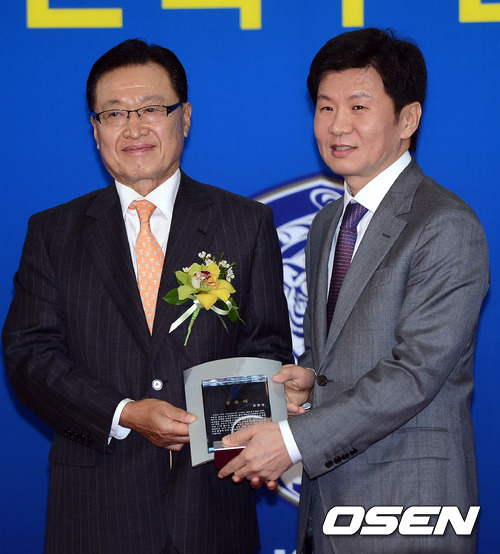 취임 후 '봉사와 소통'의 정신으로 바쁜 행보를 이어온 정몽규 회장은 이 자리에서 한국축구의 발전을 위해 헌신할 것을 다시 한 번 다짐하고, 온 축구가족이 힘을 함께 모아줄 것을 부탁했다. 또 전임 조중연 회장의 임기동안의 노고를 기리며 감사패를 전달하는 시간도 마련됐다. / youngrae@osen.co.kr