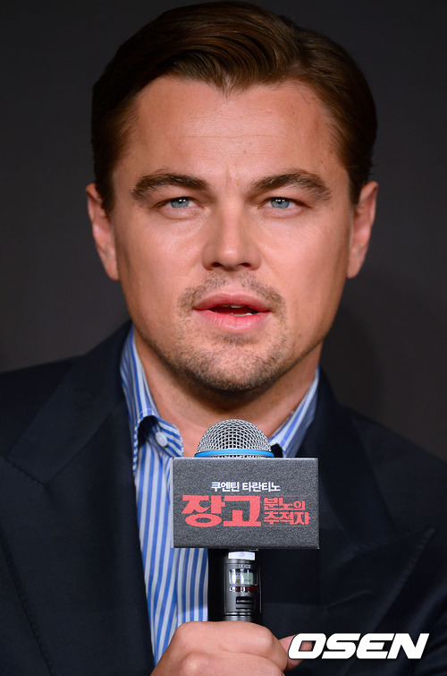 7일 오후 서울 역삼동 리츠 칼튼 호텔에서 진행된 영화 '장고:분노의 추적자'(쿠엔틴 타란티노 감독)의 제작보고회에서 레오나르도 디카프리오가 소감을 말하고 있다