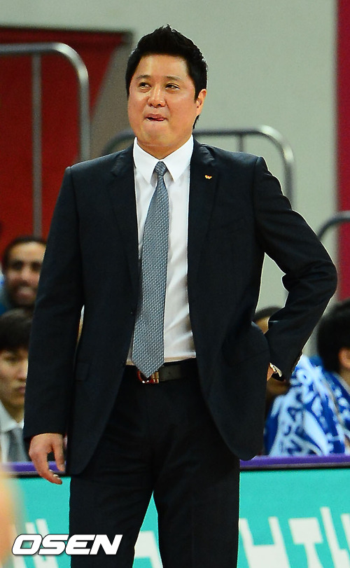 2쿼터 SK 문경은 감독이 초조한 표정으로 경기를 주시하고 있다.