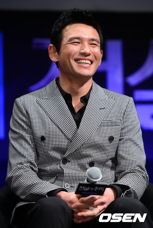 8일 오전 서울 신사동 CGV 압구정에서 열린 영화 '전설의 주먹' 제작보고회에서 황정민이 미소를 짓고 있다.