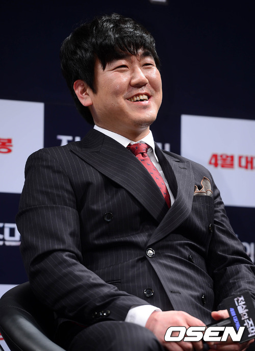 8일 오전 서울 신사동 CGV 압구정에서 열린 영화 '전설의 주먹' 제작보고회에서 윤제문이 미소를 짓고 있다.