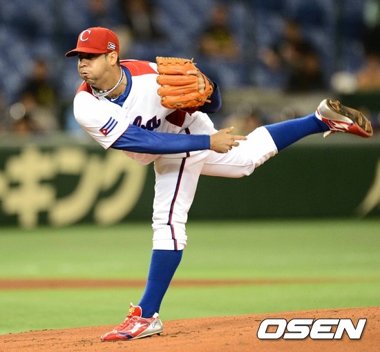 8일 오후 일본 도쿄돔에서 2013 월드베이스볼클래식(WBC) 2라운드 1조 네덜란드와 쿠바의 경기, 1회초 무사 쿠바 선발투수 히메네스가 힘차게 공을 던지고 있다.