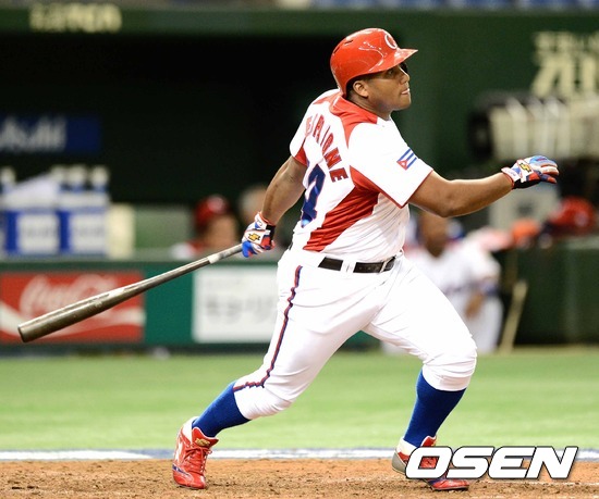 8일 오후 일본 도쿄돔에서 2013 월드베이스볼클래식(WBC) 2라운드 1조 네덜란드와 쿠바의 경기, 2회말 무사 쿠바 데스파이녜가 솔로홈런을 치고 있다.
