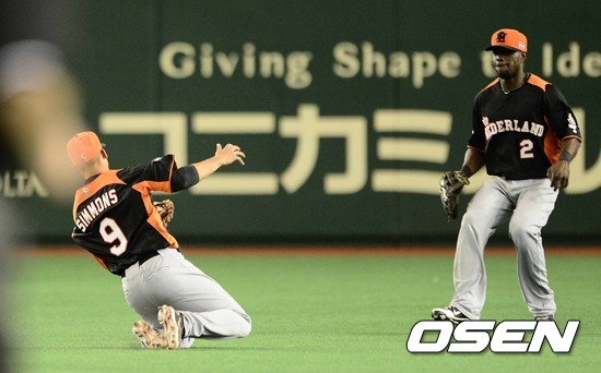 8일 오후 일본 도쿄돔에서 2013 월드베이스볼클래식(WBC) 2라운드 1조 네덜란드와 쿠바의 경기, 2회말 1사 1루 네덜란드 시몬스가 쿠바 아르에바르에나의 타구를 잡고 있다.