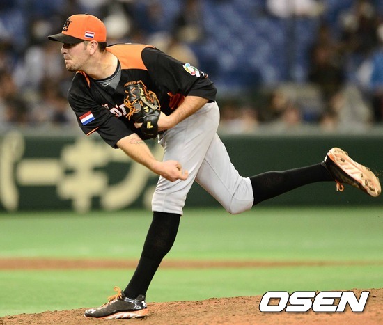 8일 오후 일본 도쿄돔에서 2013 월드베이스볼클래식(WBC) 2라운드 1조 네덜란드와 쿠바의 경기, 7회말 네덜란드 보이드가 힘차게 공을 던지고 있다.