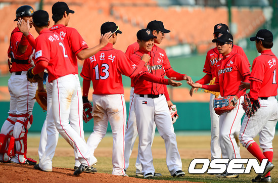 경기를 마치고 SK 선수들이 하이파이브를 하고 있다. / rumi@osen.co.kr