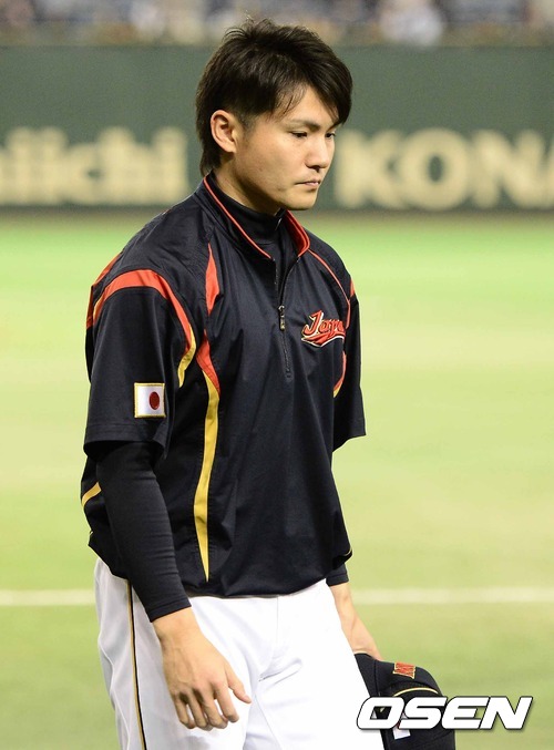8일 오후 일본 도쿄돔에서 2013 월드베이스볼클래식(WBC) 2라운드 1조 일본과 대만의 경기, 경기에 앞서 최근 불륜 스캔들에 휘말린 일본 스기우치 도시야(32)가 스트레칭 훈련을 하고 있다.