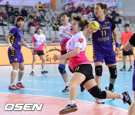 8일 오후 서울 방이동 SK핸드볼경기장에서 열린 '2013 SK 핸드볼 코리아리그' 여자부 SK 슈가글라이더즈와 컬러풀대구의 경기 후반 SK 권근혜가 슛을 시도하고 있다.