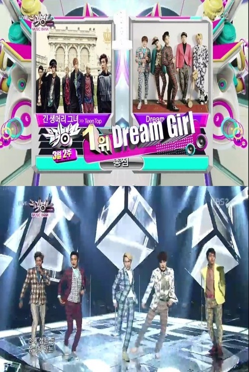 그룹 샤이니가 곡 '드림걸(Dream girl)'로 '뮤직뱅크'에서 첫 1위를 차지했다.