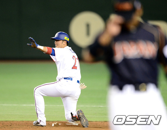 8일 오후 일본 도쿄돔에서 2013 월드베이스볼클래식(WBC) 2라운드 1조 일본과 대만의 경기, 3회말 무사 궈옌원이 2루타를 치고 2루에 안착하고 있다.