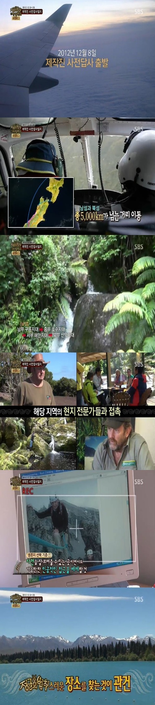 이날 제작진은 뉴질랜드의 남섬과 북섬에 이르는 총 5000km를 돌며 촬영지를 탐색하는 모습부터 각 지역의 현지 전문가와 긴밀한 상담과 조언을 구하는 모습을 담았다.