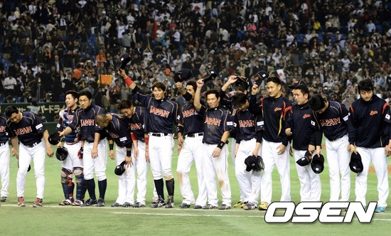 경기 종료 후 일본 선수들이 관중석을 향해 인사를 하고 있다./sunday@osen.co.kr