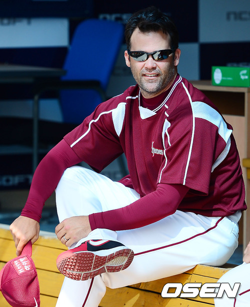 경기 전 넥센 나이트가 덕아웃에 앉아서 그라운드를 바라보고 있다.
