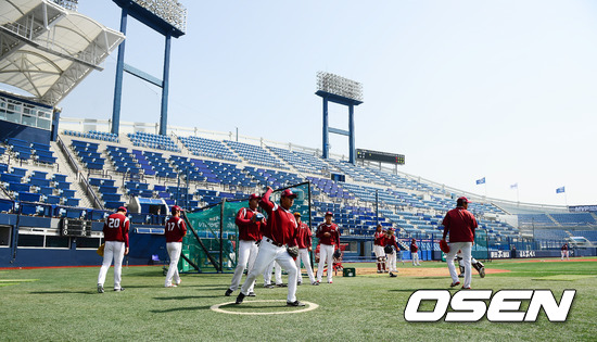경기 전 넥센 선수들이 창원 마산야구장에서 훈련을 하고 있다.