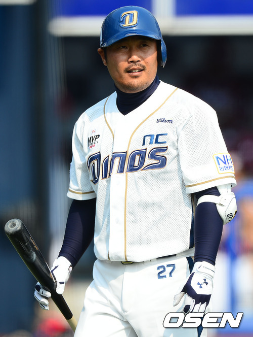 4회말 선두타자 NC 이호준이 타석에서 삼진아웃을 당한 후 아쉬워하고 있다.