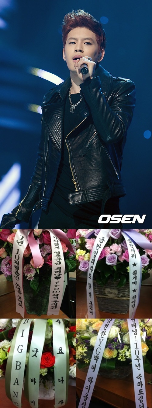 또 YG의 막내 이하이의 화환도 공개됐다. 이하이는 화환 속에 '선배님! 10주년 축하드립니다. 얌전한 YG막내 하이올림'이라는 글을 적었다.