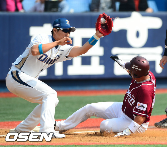 2회 2사 후 오윤의 타구가 3루수 모창민 앞에 떨어지면서 내야안타가 됐다. NC는 이후 박헌도의 타구를 3루수가 빠트려 순식간에 2사 1,3루 위기를 맞았다. NC 선발 아담은 박동원에게 좌익선상 2루타를 맞고 2실점 했다.
