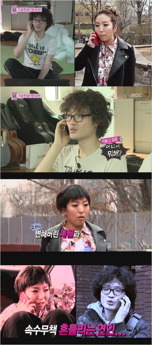여기에 11년 전 처음 만났을 당시의 패션을 다시 시도했다. 정인은 가발에 삼선슬리퍼를 신었다. 이날 두 사람은 11년 전 교제를 시작할 때의 첫 만남의 장소를 떠올리기는 쉽지 않았다. 두 사람이 생각하는 첫 만남의 장소는 11년의 시간이 흐른 만큼 달랐다.