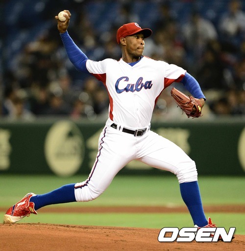 9일 오후 일본 도쿄돔에서 열린 '2013 월드베이스볼클래식(WBC)' 2라운드 1조 대만과 쿠바의 경기, 1회초 무사 쿠바 선발투수 데니 베탄코트가 힘차게 공을 던지고 있다.