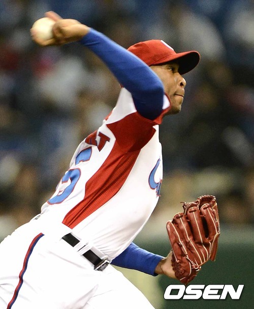 9일 오후 일본 도쿄돔에서 열린 '2013 월드베이스볼클래식(WBC)' 2라운드 1조 대만과 쿠바의 경기, 1회초 무사 쿠바 선발투수 데니 베탄코트가 힘차게 공을 던지고 있다.