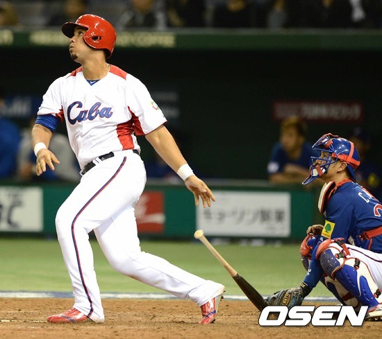 9일 오후 일본 도쿄돔에서 열린 '2013 월드베이스볼클래식(WBC)' 2라운드 1조 대만과 쿠바의 경기, 6회말 1사 2루 쿠바 아브레우가 투런 홈런을 치고 있다.