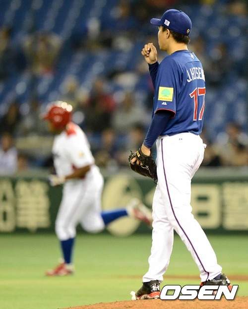 6회말 1사 쿠바 데스파이녜에게 솔로포를 허용한 대만 쩡런허가 아쉬운 표정을 짓고 있다./sunday@osen.co.kr