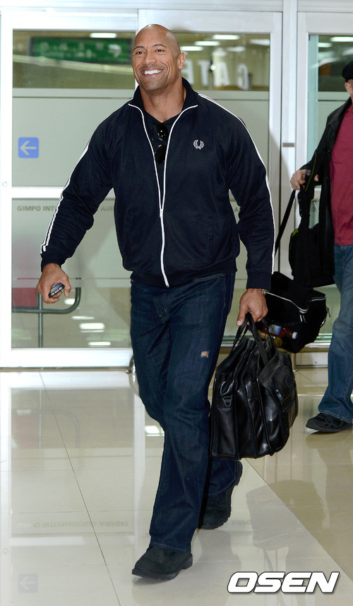 드웨인 존슨이 입국장을 빠져나가고 있다.