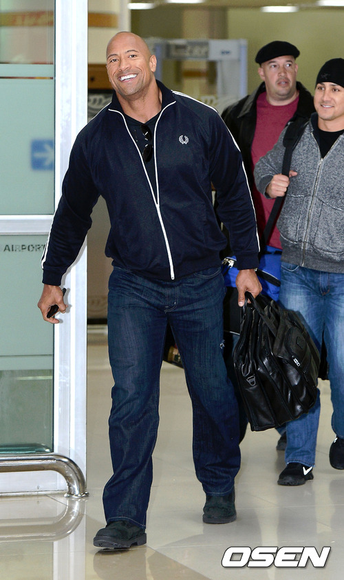 드웨인 존슨이 입국장을 빠져나가고 있다.