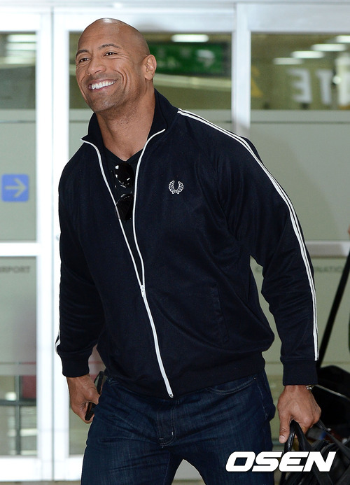 드웨인 존슨이 입국장을 빠져나가고 있다.