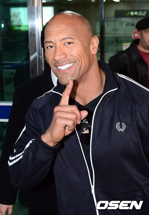 드웨인 존슨이 입국장을 빠져나가고 있다.