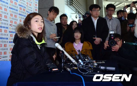 10일 오전 인천국제공항을 통해 출국하는 김연아가 출국장에서 인터뷰를 하고 있다.