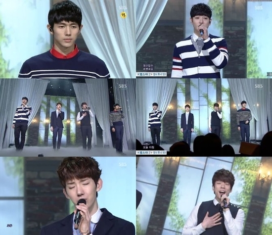 2AM은 10일 오후 생방송으로 진행된 SBS '인기가요‘에 출연해 신곡 ‘너를 읽어보다’와 ’어느 봄날’의 무대를 꾸몄다.