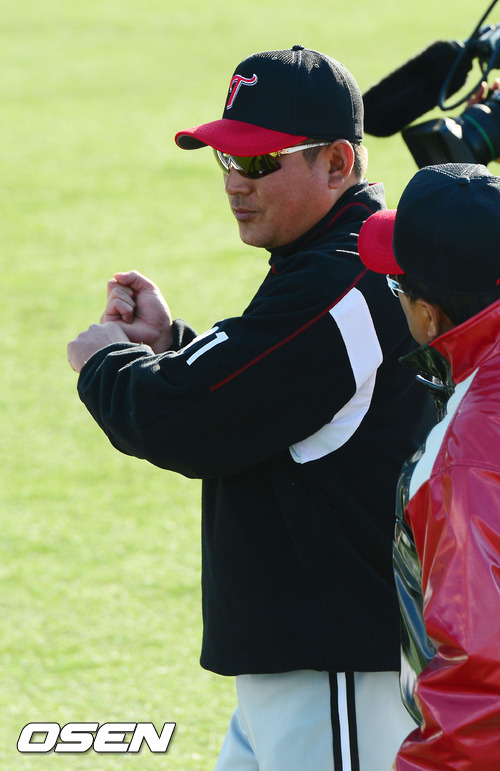 경기를 마치고 LG 김기태 감독이 스윙 폼을 보이며 퇴장하고 있다. / rumi@osen.co.kr