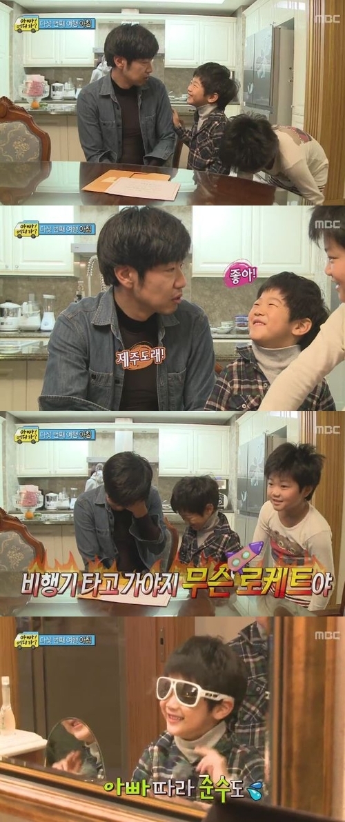 10일 방송된 MBC 예능프로그램 ‘일밤-아빠 어디가’에서는 다섯 아빠와 아이들이 제주도로 떠나기 전 즐겁게 여행을 준비하는 모습이 전파를 탔다.