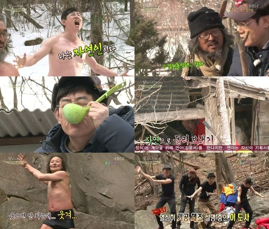 그러나 형언할 수 없는 25년 묵은 술의 맛이나 문도 안 달린 화장실에서 볼일을 봐야 하는 상황 등은 도시 생활에 길들여진 이경규와 김준호의 입장에서는 난관의 연속이었다. 김 씨를 따라 지게를 지고 눈 덮힌 산을 돌아다닌 두 사람은 당근과 호박, 땅콩 등을 생으로 먹으며 끼니를 해결했다. 그리고 다시 산에 올라 상반신을 내놓고 혹한기 훈련(?)도 했다. 대자연의 품에 안긴 두 사람은 처음의 서먹함보다는 다소 안정을 찾은 모습이었다.