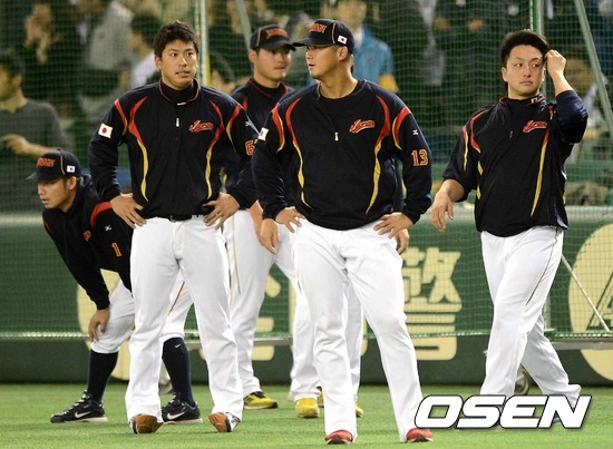 10일 오후 일본 도쿄돔에서 열린 '2013 월드베이스볼클래식(WBC)' 2라운드 1조 일본과 네덜란드의 승자전 경기, 경기에 앞서 일본 선수들이 스트레칭 훈련을 하고 있다.