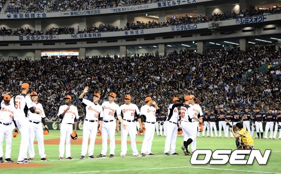 10일 오후 일본 도쿄돔에서 열린 '2013 월드베이스볼클래식(WBC)' 2라운드 1조 일본과 네덜란드의 승자전 경기, 경기에 앞서 양팀 선수들의 선수 소개가 진행되고 있다.