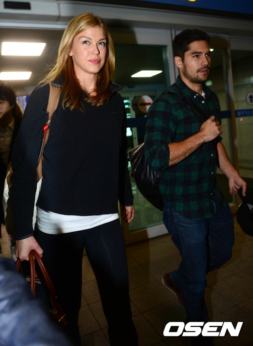 10일 오후 영화 '지.아이.조2' 홍보차 인천국제공항을 통해 입국한 애드리앤 팰리키(왼쪽)와 D.J. 코트로나가 입국장을 빠져나가고 있다.