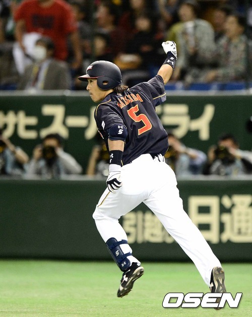 10일 오후 일본 도쿄돔에서 열린 '2013 월드베이스볼클래식(WBC)' 2라운드 1조 일본과 네덜란드의 승자전 경기, 2회초 1사 1루에서 일본 마쓰다가 투런 홈런을 날리고 그라운드를 돌며 환호하고 있다.