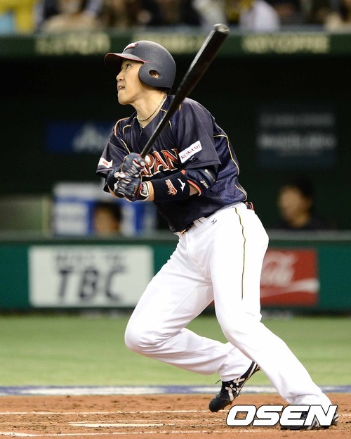 10일 오후 일본 도쿄돔에서 열린 '2013 월드베이스볼클래식(WBC)' 2라운드 1조 일본과 네덜란드의 승자전 경기, 2회초 1사 1,2루에서 일본 우치카와가 스리런 홈런을 날리고 타구를 바라보고 있다.