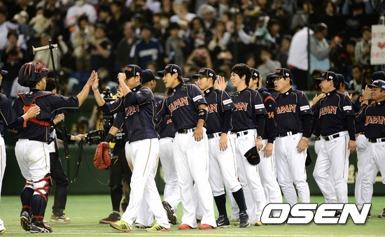 경기 종료 후 일본 선수들이 승리의 기쁨을 나누고 있다./sunday@osen.co.kr