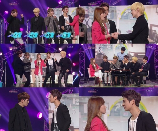 샤이니는 10일 오후 방송된 KBS 2TV '개그콘서트(이하 '개콘')' 속 '생활의 발견' 코너에 출연, 로맨틱한 모습과 카리스마 넘치는 모습을 동시에 선보였다.