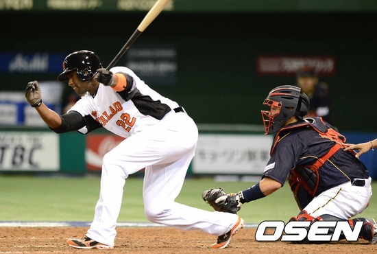 4회말 2사에서 네덜란드 더 캐스터가 마에다의 투구를 헛스윙 하고 있다./sunday@osen.co.kr