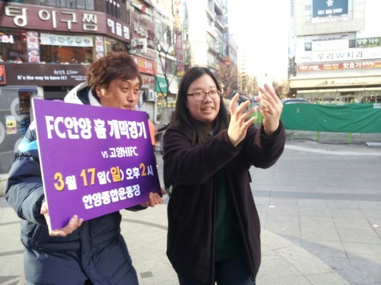 오는 17일(일) 오후 2시에 안양종합운동장에서 역사적인 창단 첫 경기를 앞두고 있는 FC안양이 안양시내 곳곳을 다니며, 시민들과 길거리 만남을 가졌다.