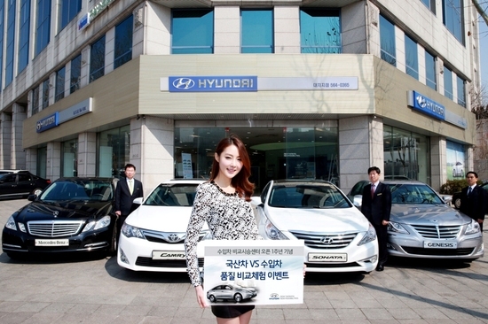 현대차는 '쏘나타'를 비롯해 'i30' '벨로스터' '제네시스' 4개 주요 차종과 골프, 미니쿠퍼, 캠리, 벤츠E클래스, BMW5 시리즈 등 독일 및 일본계 수입브랜드의 대표적인 5개 차종을 선정, 소비자들이 직접 2박 3일간 무상으로 시승해 볼 수 있는 기회를 제공한다.
